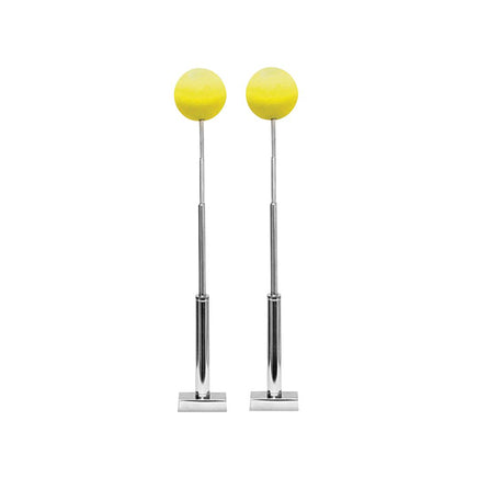 REESE Towpower solo hitch alignment system is designed for easier attachment of the tow vehicle to the trailer. It features a magnetic base for convenient placement, and adjustable rods with yellow indicators.