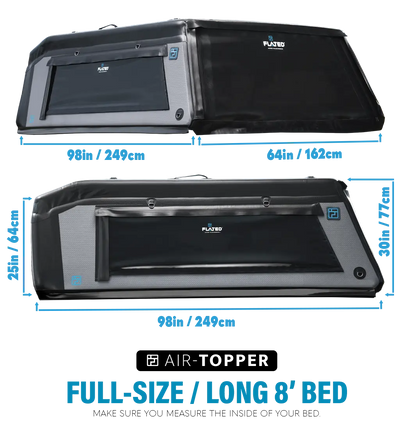 The Full-Size Air-Topper™ Long bed was designed to fit most 8ft beds on the GMC Sierra, Ford 150, Chevy Silverado and Ram 2500-3500.